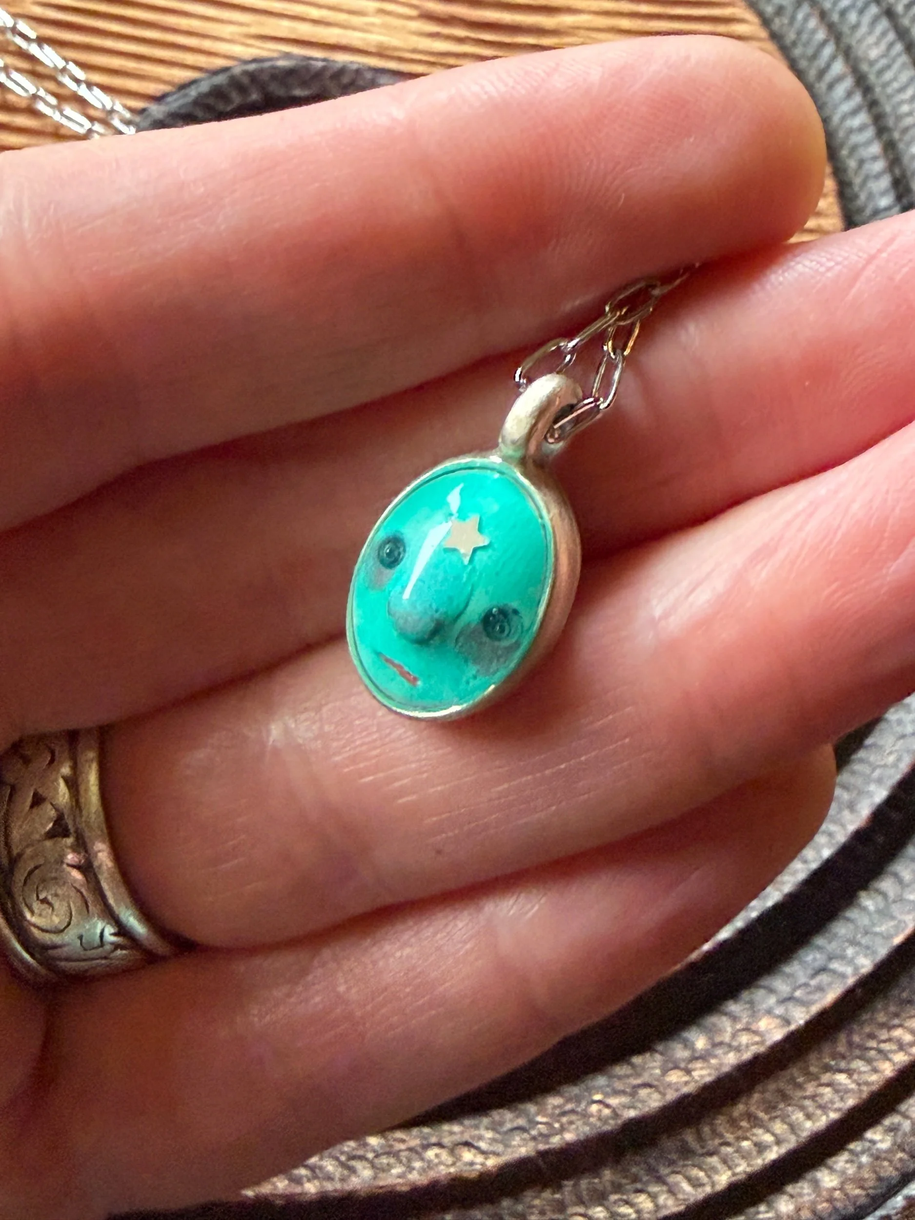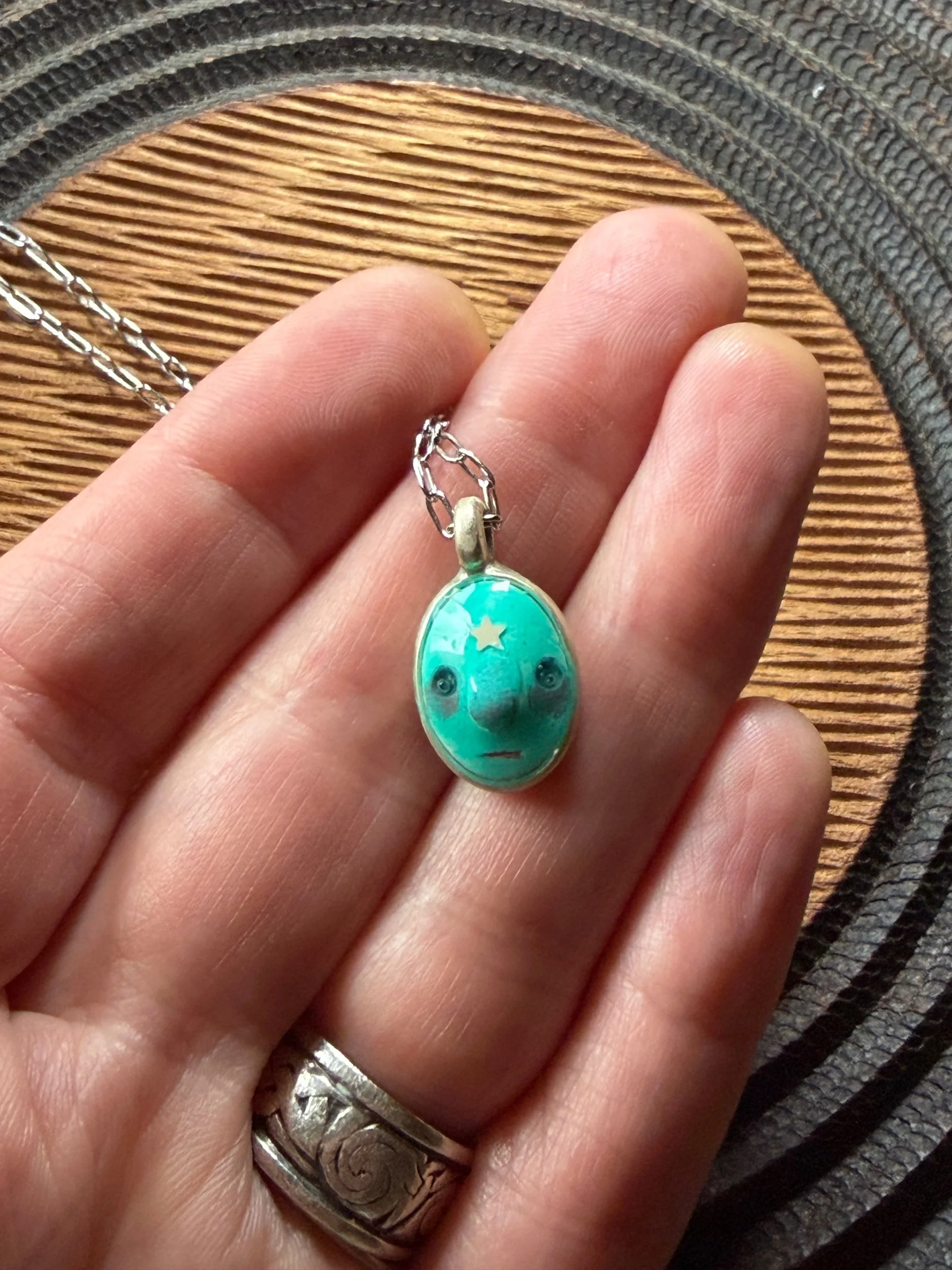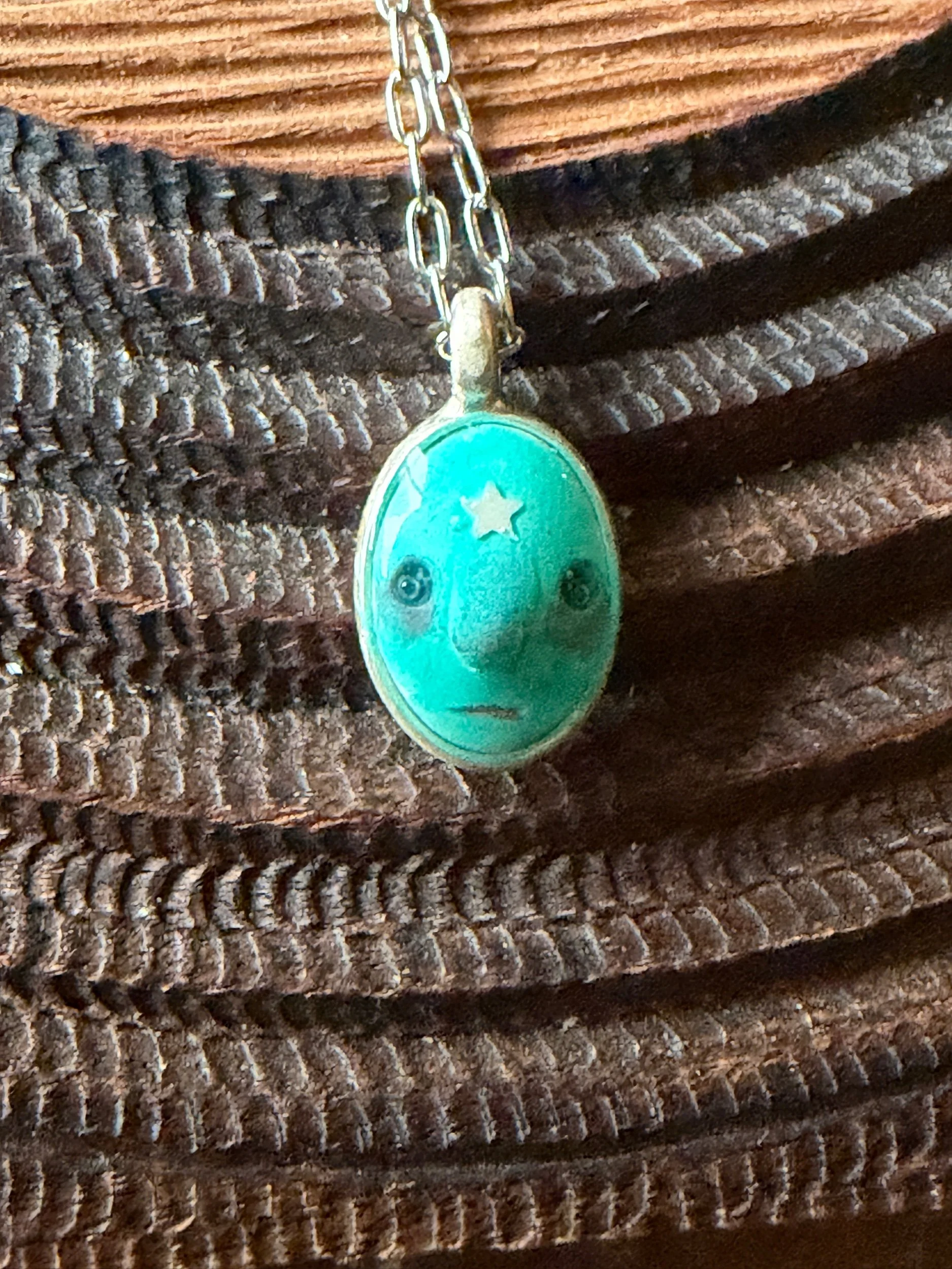 Tiny Oval Hopeful Face PENDANT Turquoise