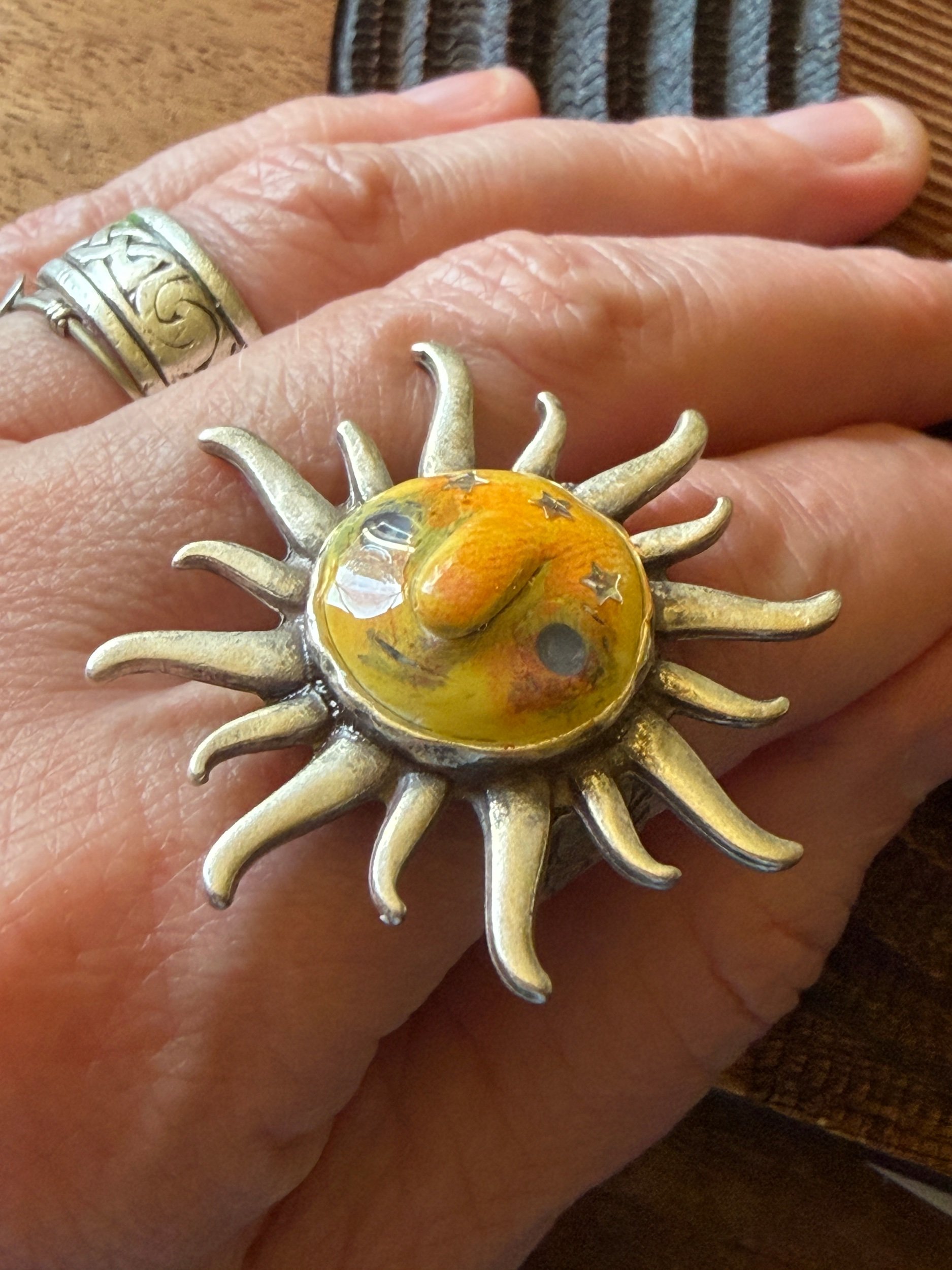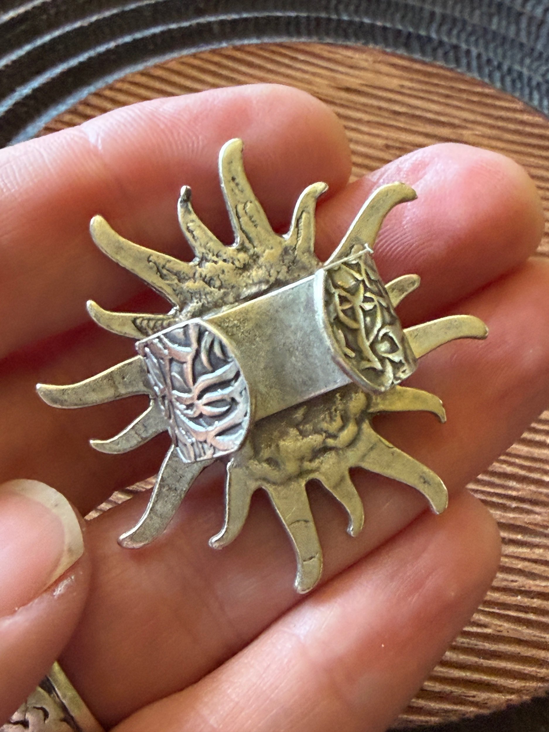 Another Sun Burst Face Ring but Silver Colored