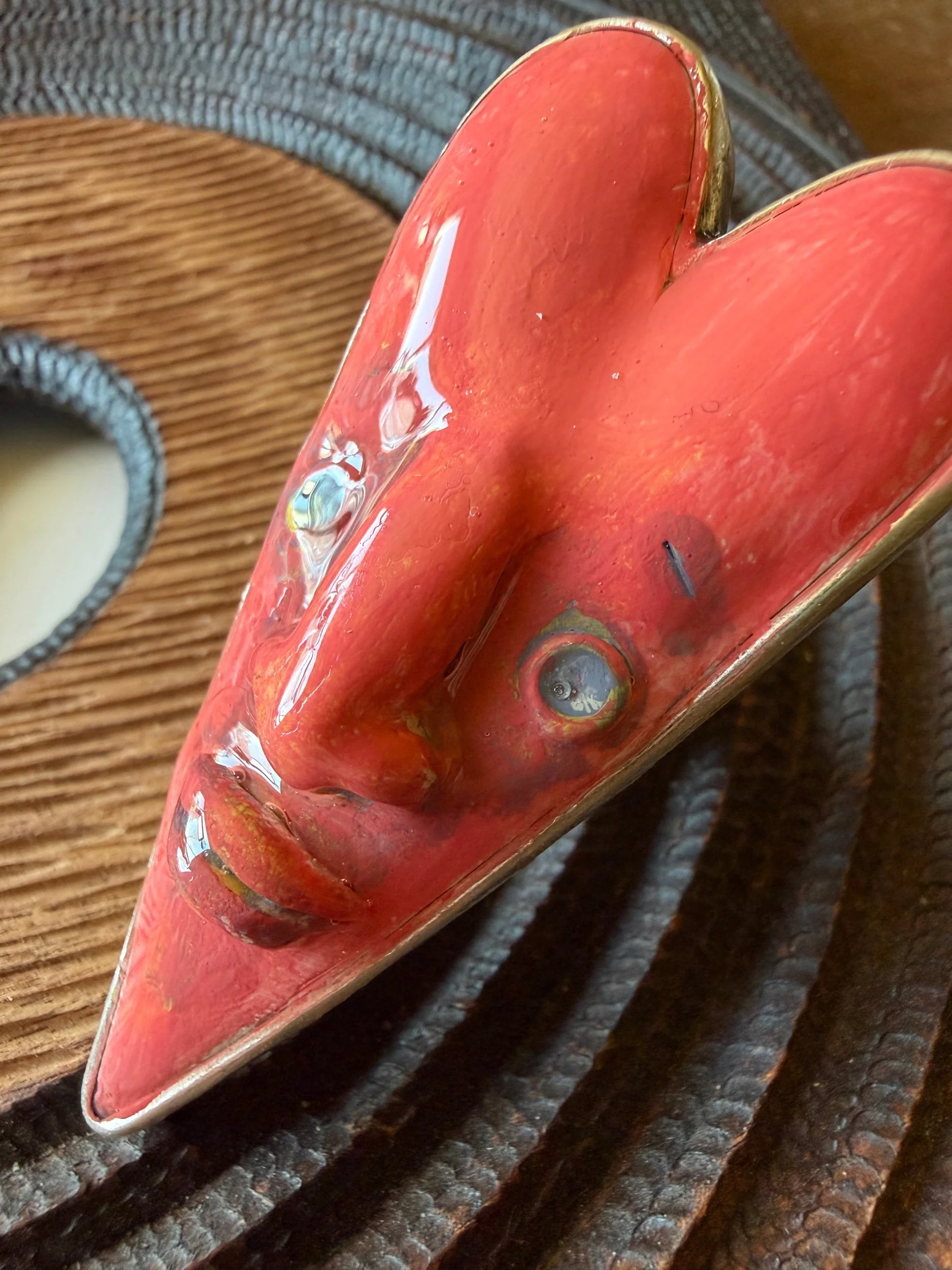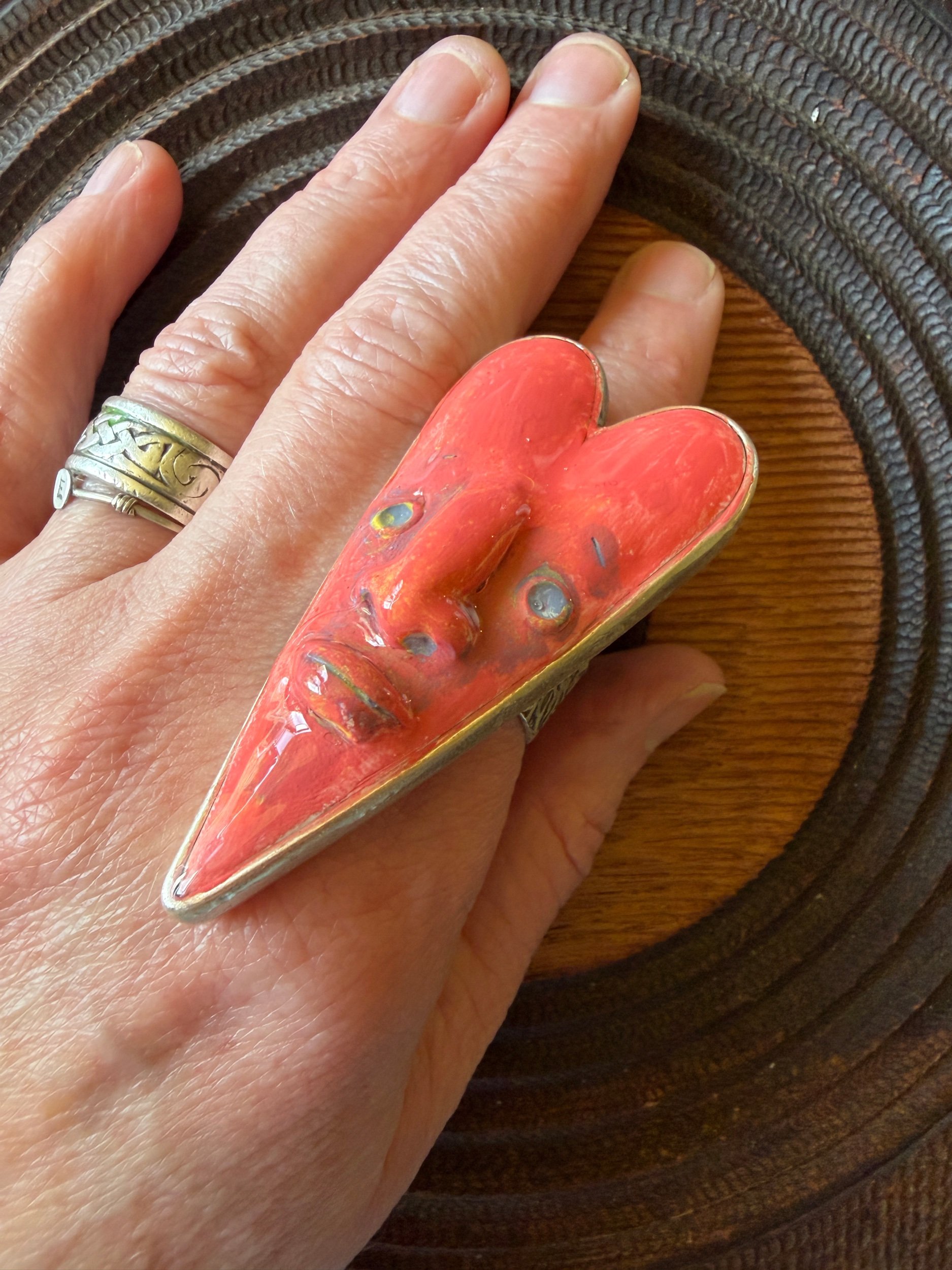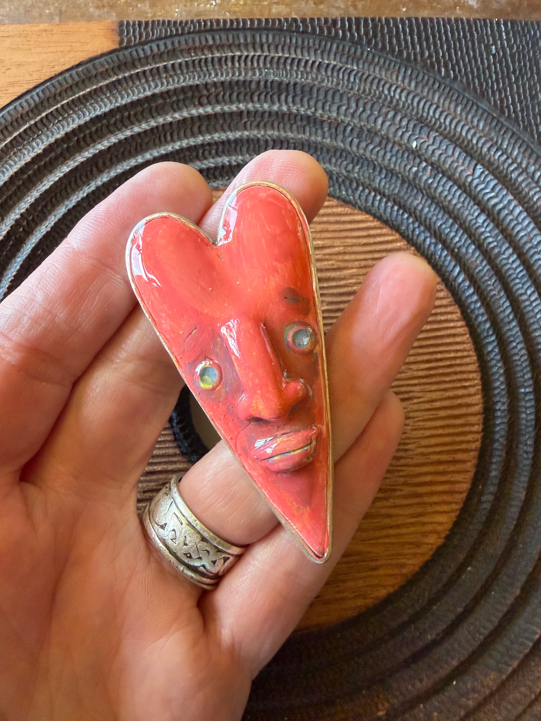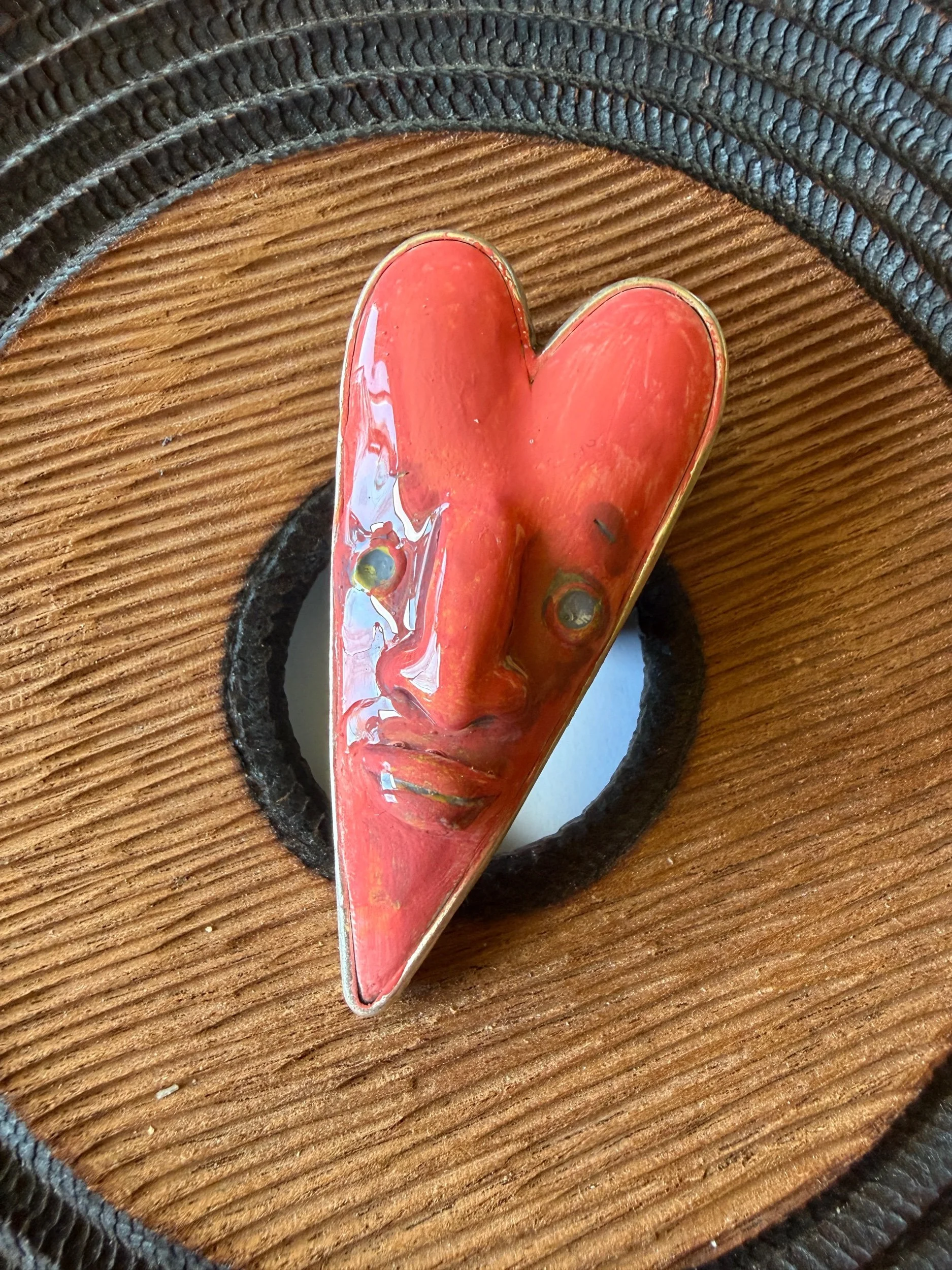 My first giant heart ring design was a heart with an open eye… because though my love is not blind, it is open minded and fair. I have worn it so much and love how it makes any outfit feel special. It might be the perfect addition to any creative ensemble. This face is discerning but loyal, honest and steadfast. It is not flowery but can be very earnestly romantic! I made myself one of these faces and LOVE it!