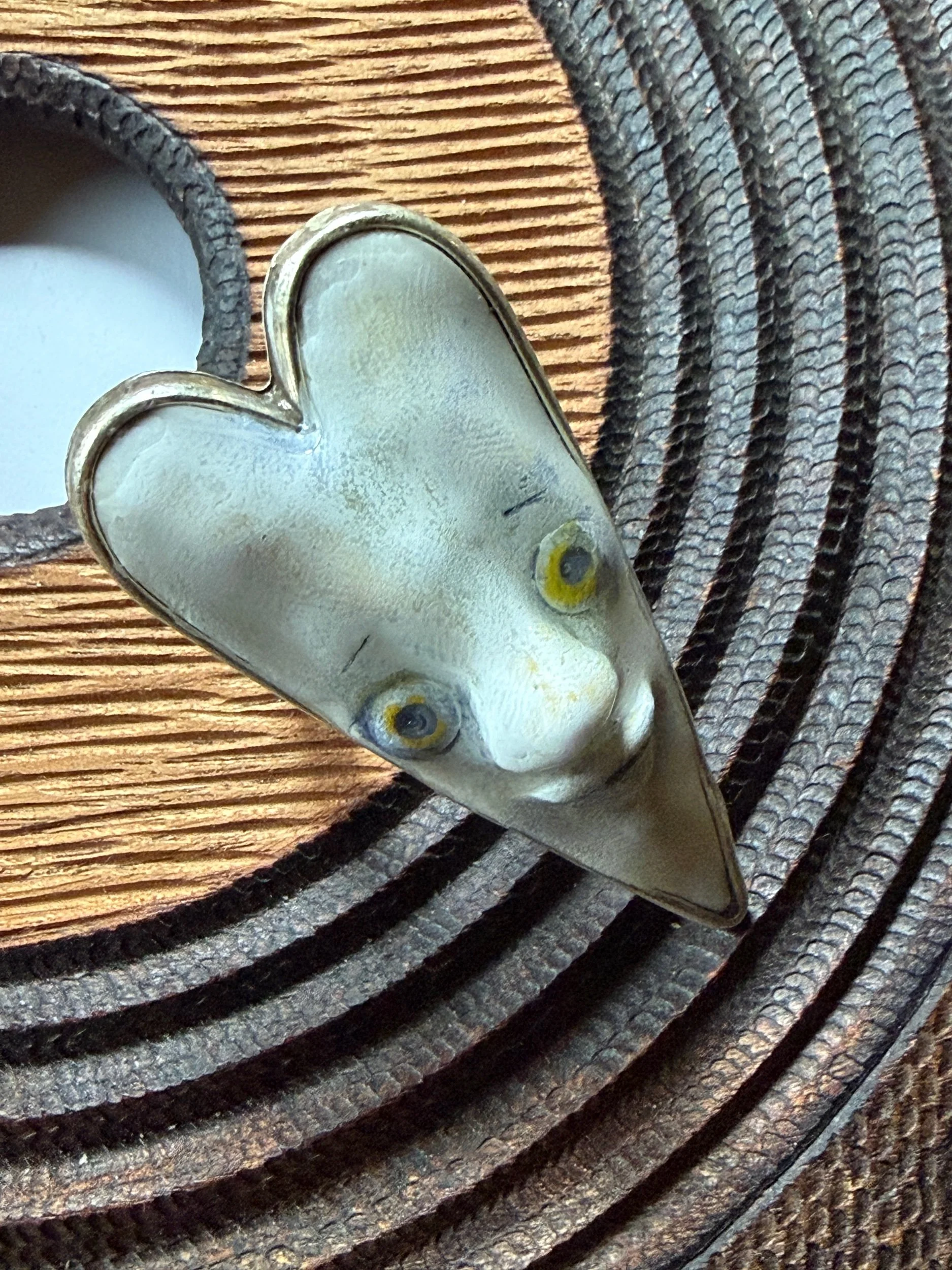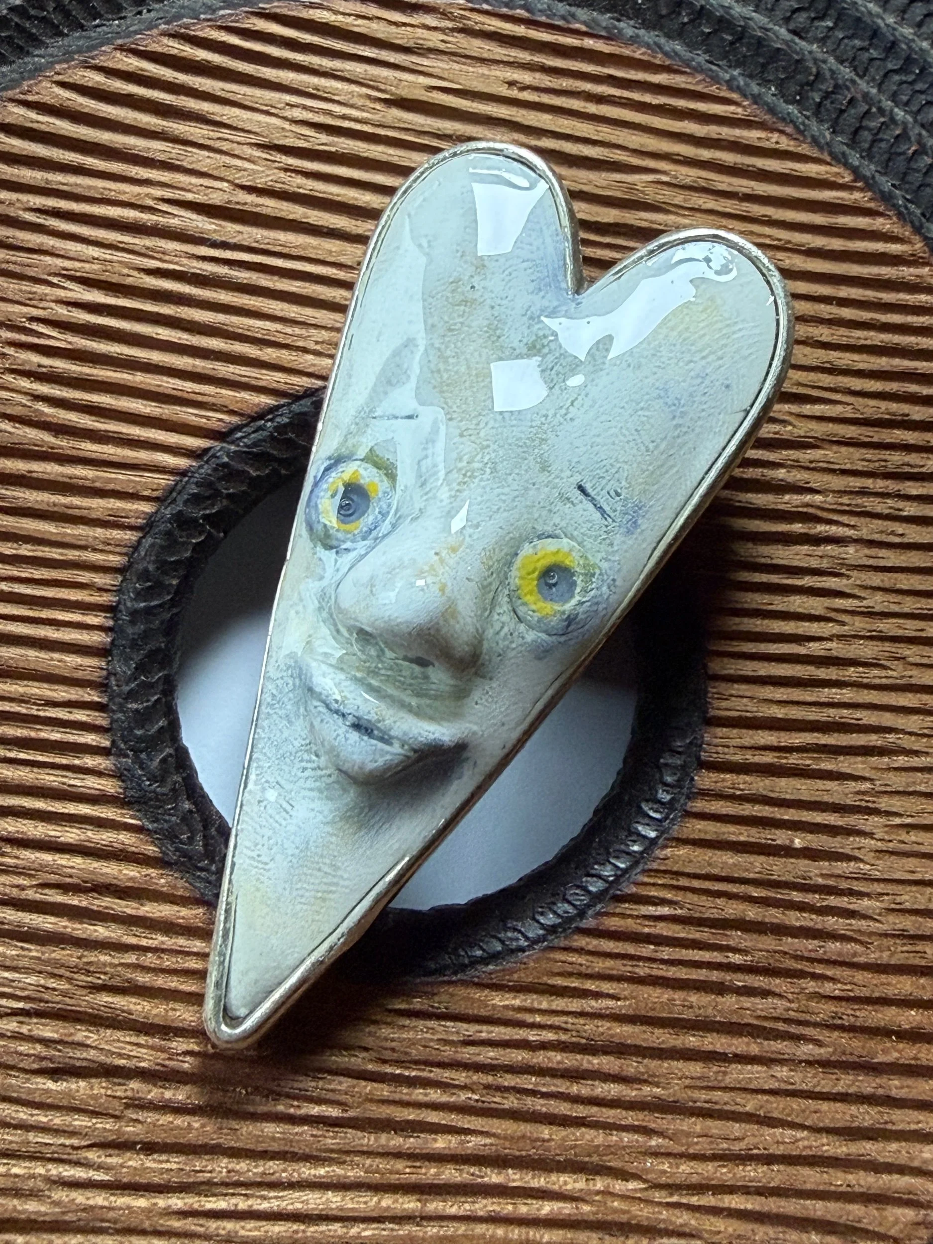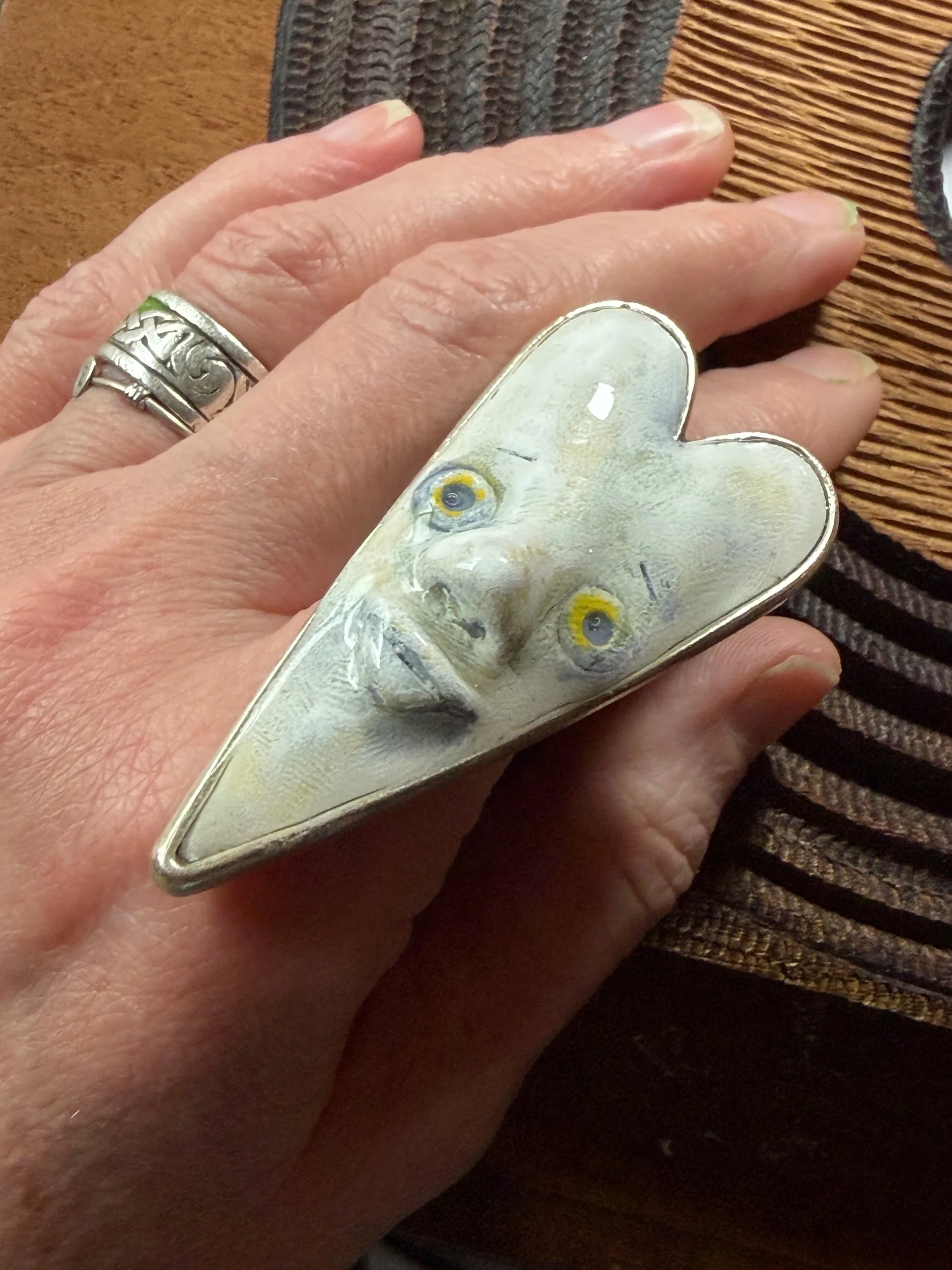 My first giant heart ring design was a heart with an open eye… because though my love is not blind, it is open minded and fair. I have worn it so much and love how it makes any outfit feel special. It might be the perfect addition to any creative ensemble. This face is discerning but loyal, honest and steadfast. It is not flowery but can be very earnestly romantic! I made myself one of these faces and LOVE it!
