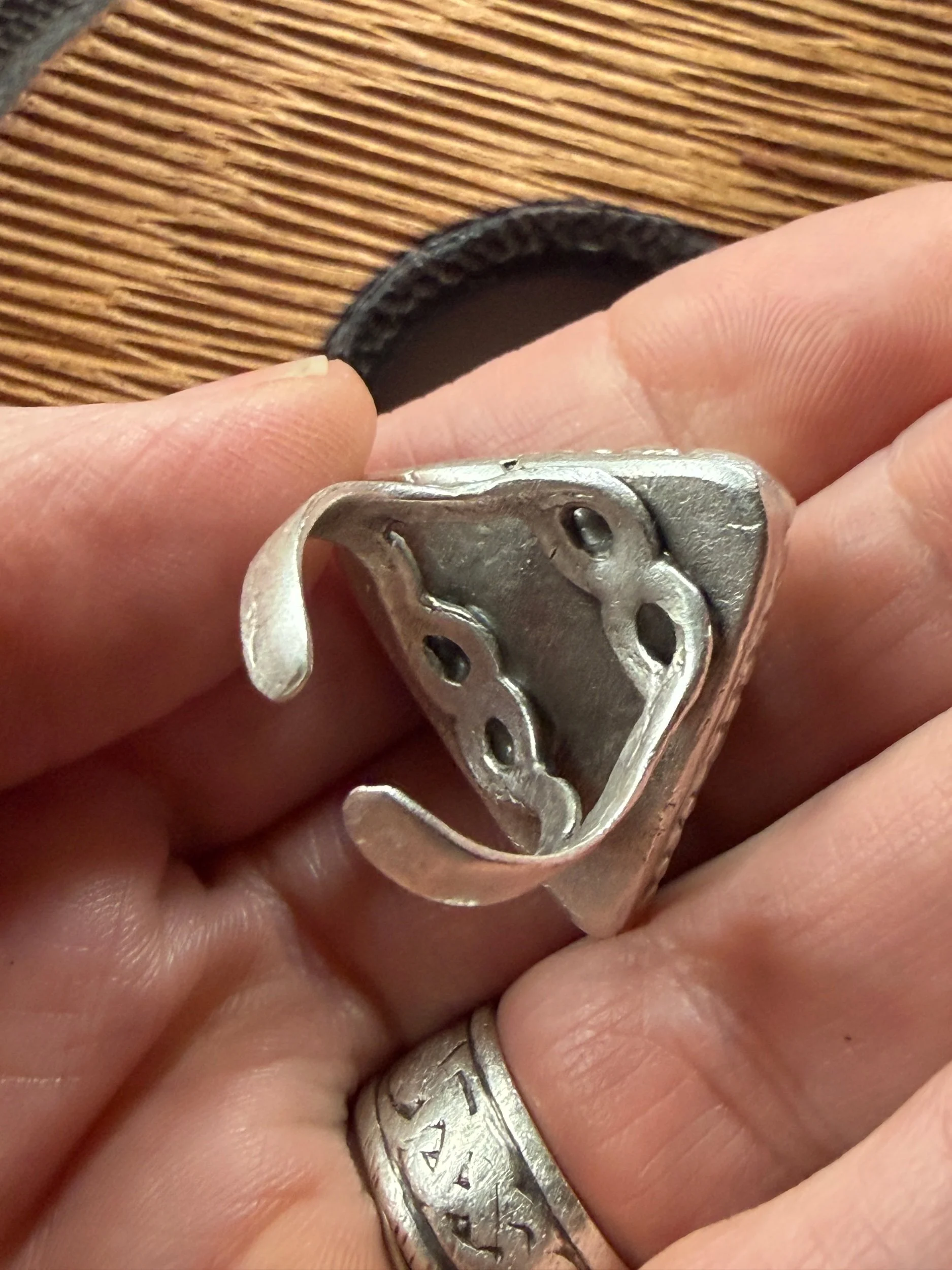 This sweet little guy is the most supportive friend. An excellent fidget ring, the sculpted face and thick protective finishing coat are as comforting to rub as a worry stone.