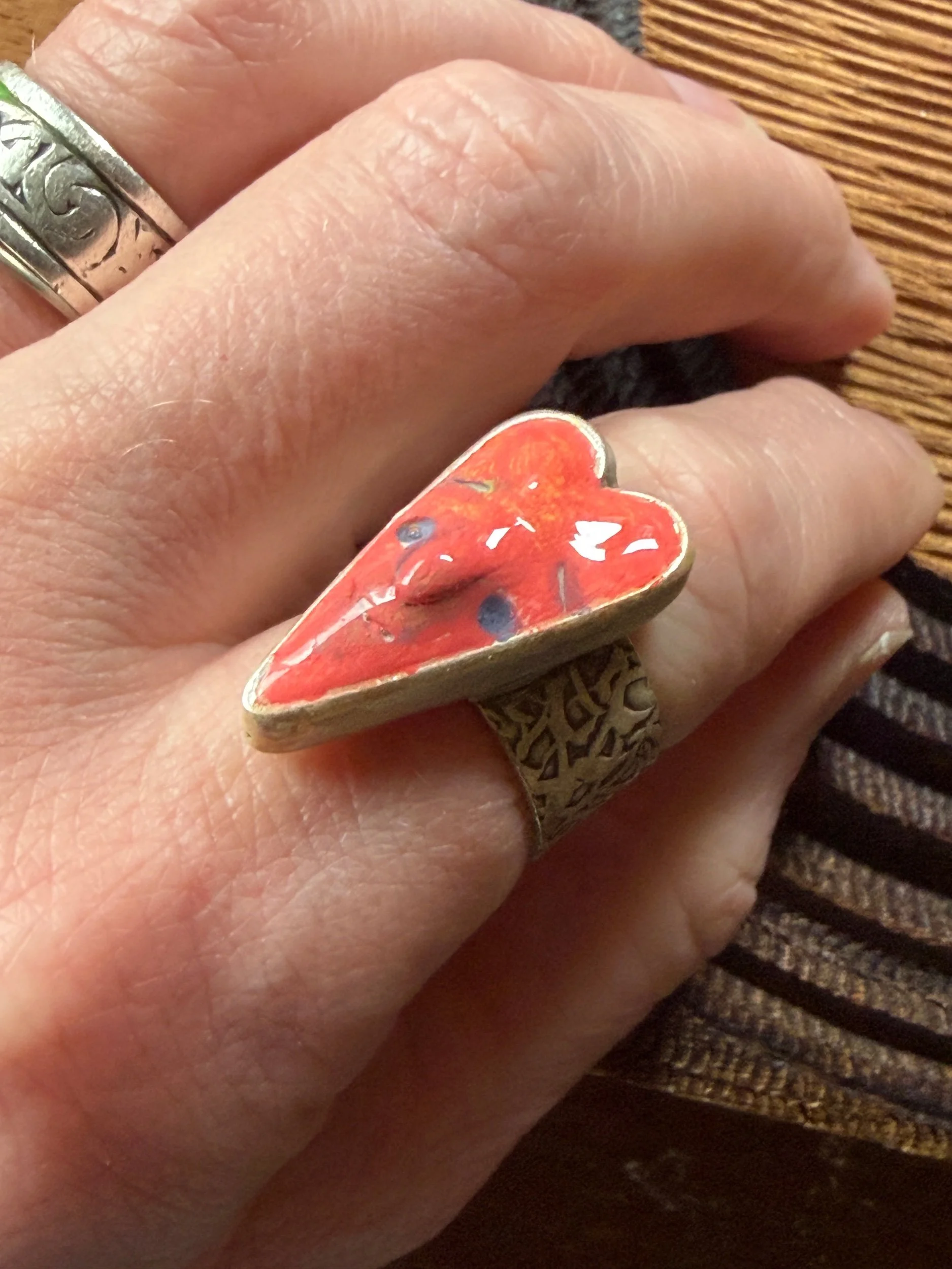 Hand painted and one of a kind, this ring is sure to be a piece you will cherish, a little piece of Art you can count on to help you express your unique style.
