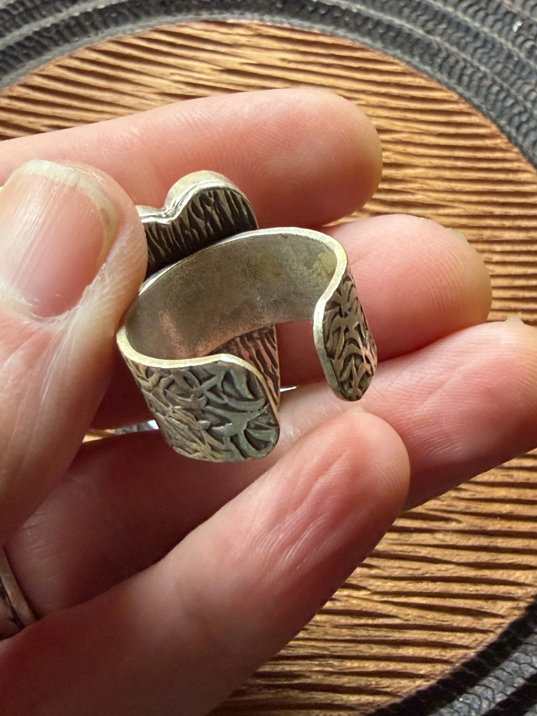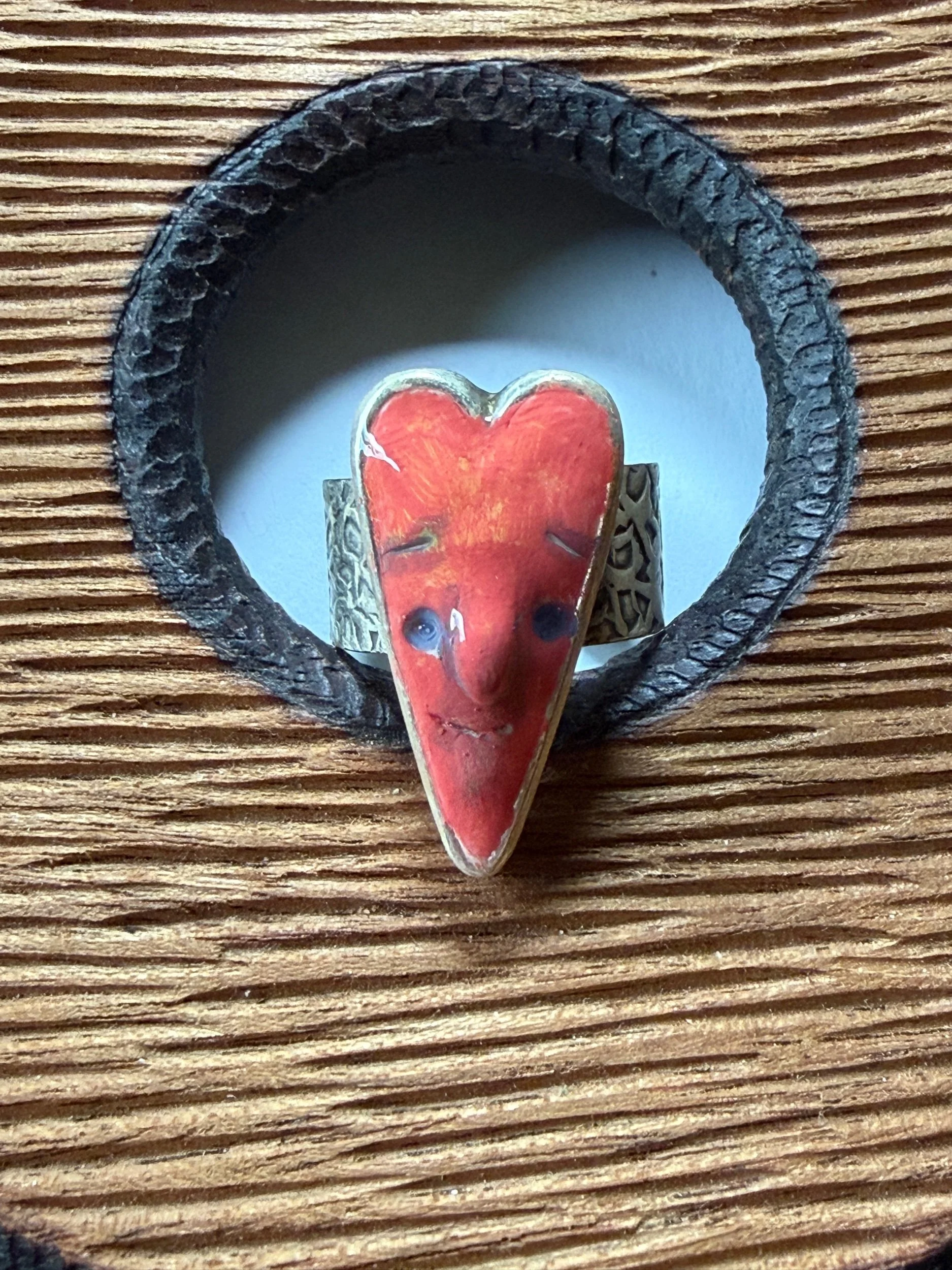 Comfortable to wear and one size fits most adjustable, this ring is 24×12mm, non precious metals (metal parts not designed or made by us). The size is perfect for an accent ring or to wear alone! It is sculpted from polymer clay, molded and cast in resin, hand painted and then coated with several clear resin topcoats. (All of our pieces are one of a kind and may be imperfectly perfect.)