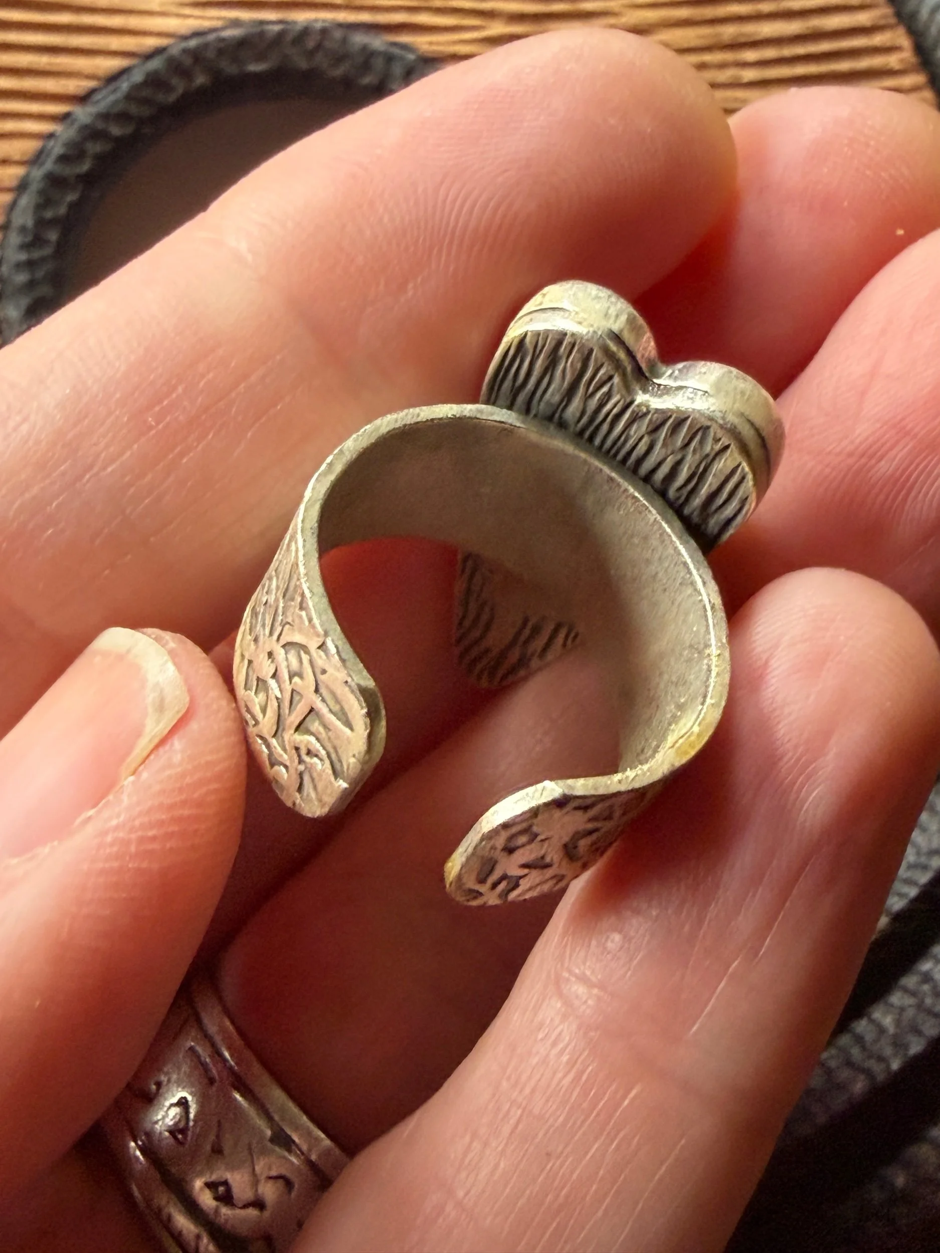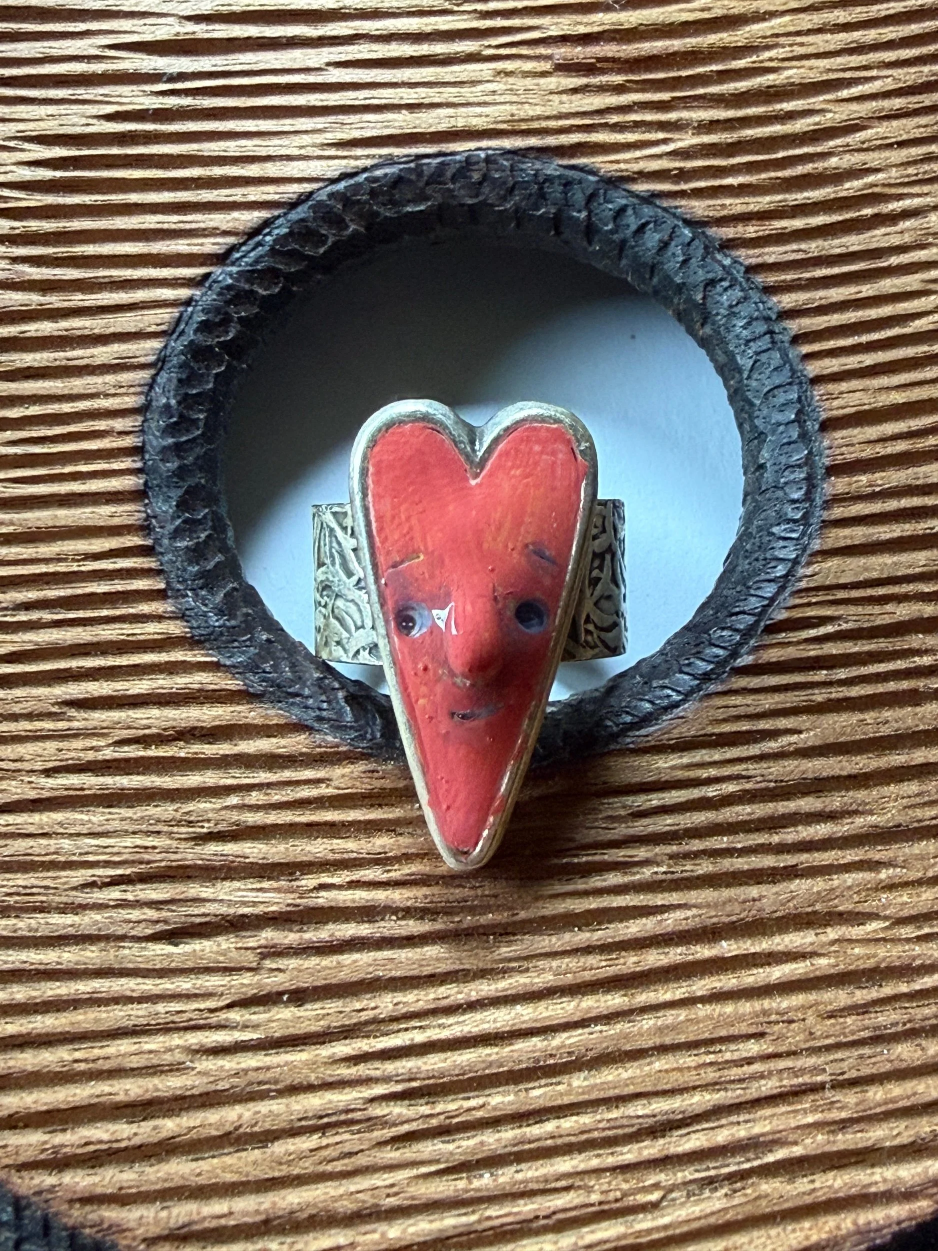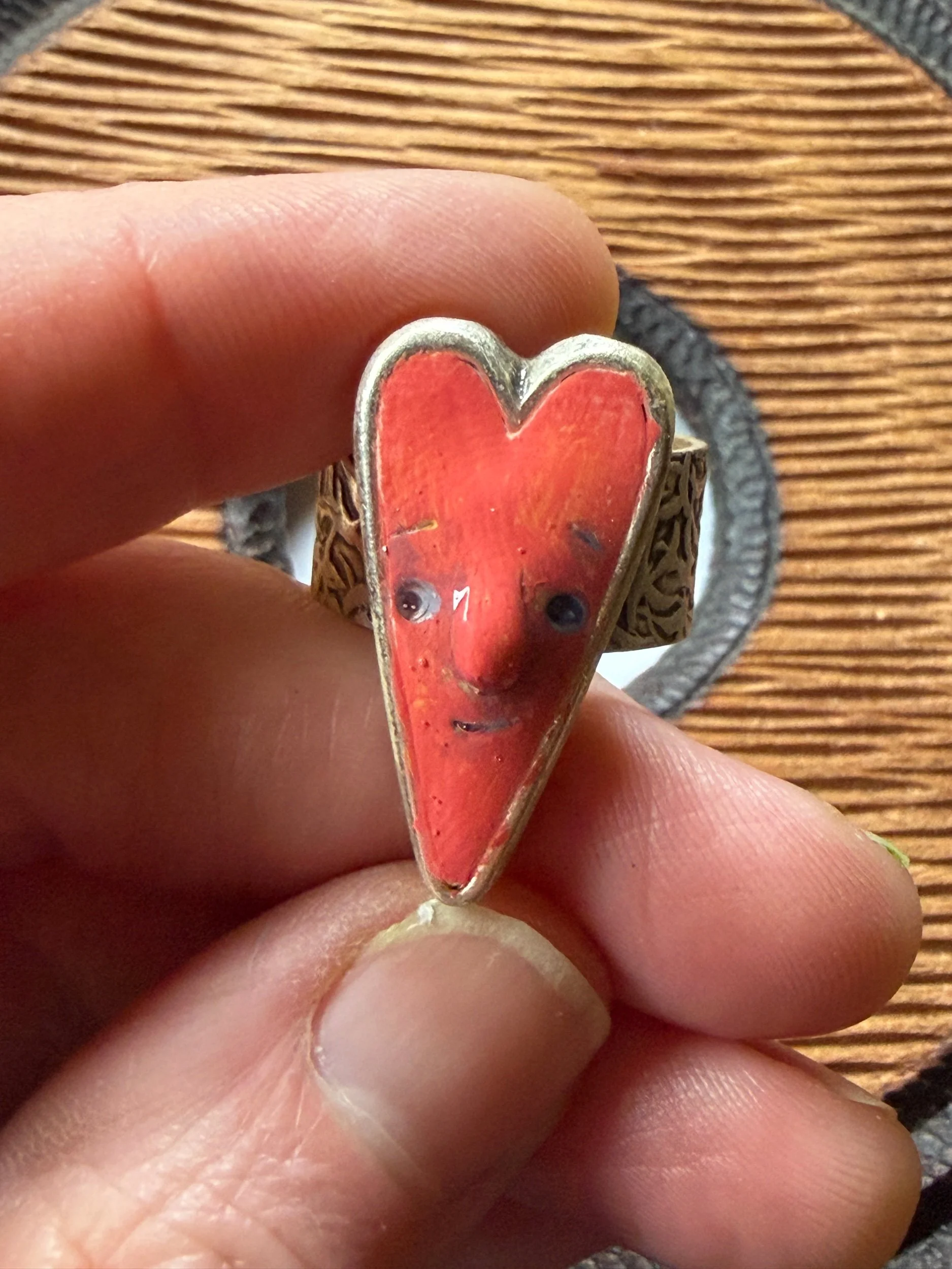 Comfortable to wear and one size fits most adjustable, this ring is 24×12mm, non precious metals (metal parts not designed or made by us). The size is perfect for an accent ring or to wear alone! It is sculpted from polymer clay, molded and cast in resin, hand painted and then coated with several clear resin topcoats. (All of our pieces are one of a kind and may be imperfectly perfect.)