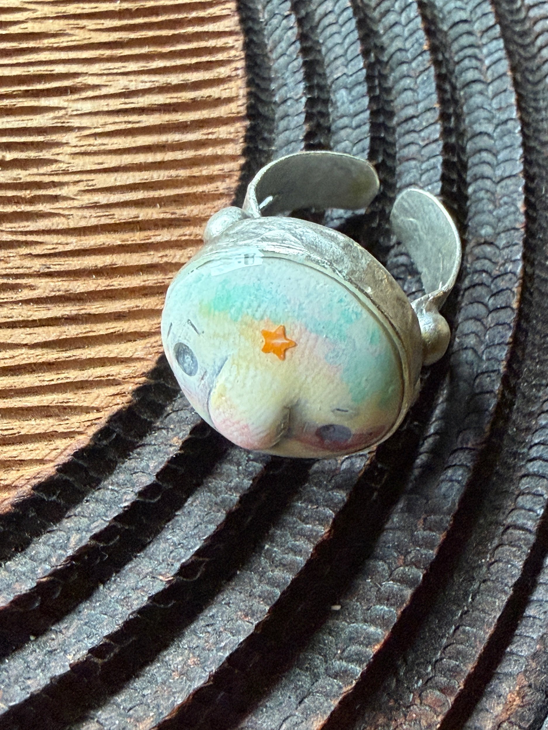 Lovingly sculpted, painted and finished to feel comforting to the touch, this little cutie makes a great fidget ring. A little too pinchy at the moment? Take it off and find it in your pocket when you need it! I love these rings!